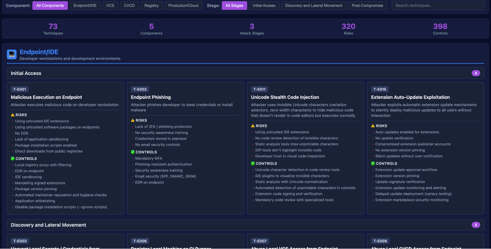 Под всеми опубликованными статьями и докладами можно подвести резюме и поделиться фреймворком, который позволяет описать процесс защиты инфраструктуры разработки. SITF представляет из себя каталог сценариев атак и контролей безопасности, которые разделены на 5 ключевых блоков: рабочая станция разработчика и его среда разработки, системы управления исходным кодом, системы CI/CD, системы хранения артефактов и production-среда. Для каждого блока составлен каталог техник атак и мер защиты, а также есть средства для визуализации.